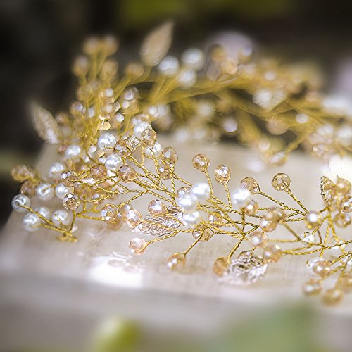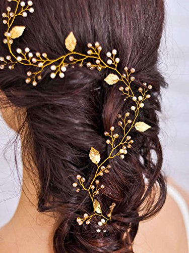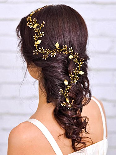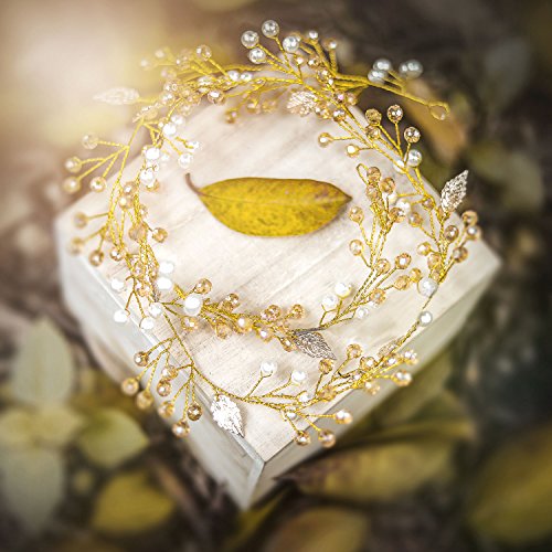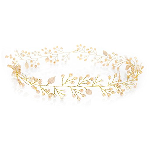 Yean Wedding Leaves Headband Gold Bridal Hair Vine for Bride and Bridesmaids (70cm / 27.6inches)