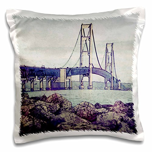 3dRose Mackinac Bridge - bridge connecting Michigan s Upper and Lower Peninsulas - Pillow Case, 16 by 16-inch (pc_39422_1)