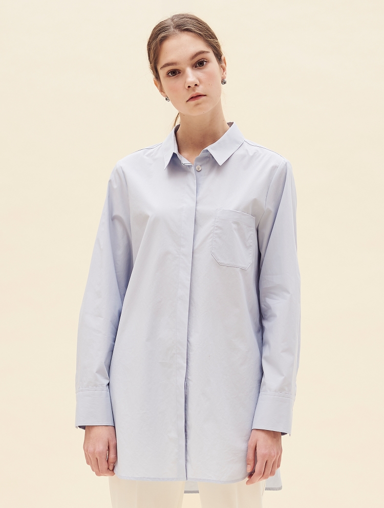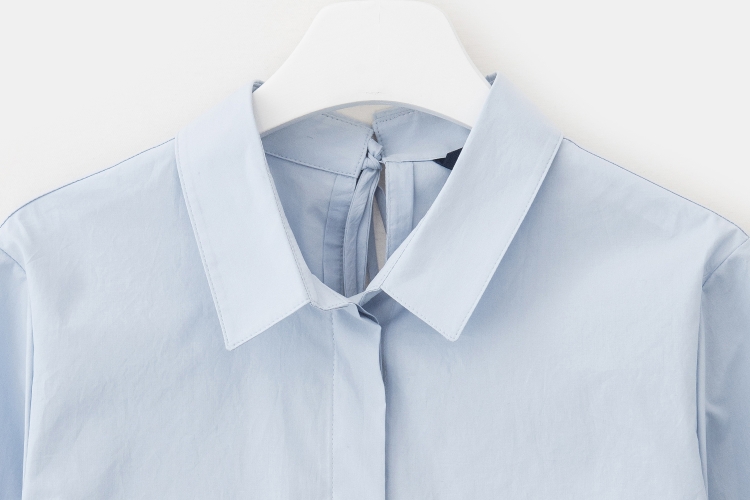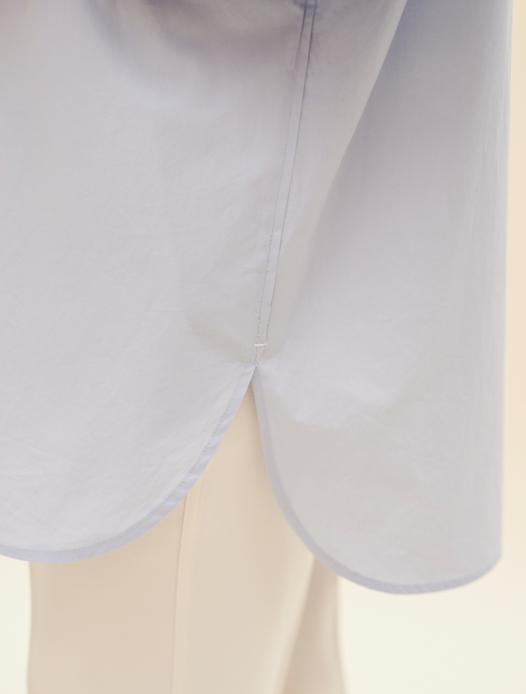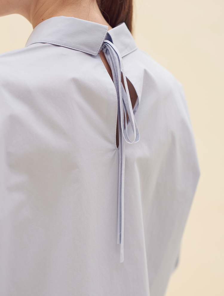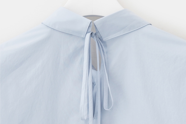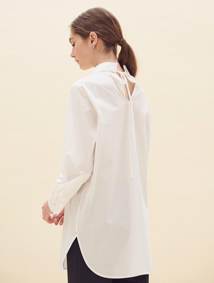 - 넥라인 후면의 리본 묶음 디테일의 롱셔츠입니다.