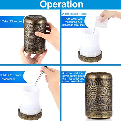 - 【Timer Mode & Waterless Shut-off】: The aroma diffusers for essential oils has 4 time setting modes: 0.5H, 1H, 2Hs, 3Hs, with 100ml capacity, the oil diffuser humidifier can last up to 3-5hrs, the oil diffuser will shut-off auto when the water runs out.