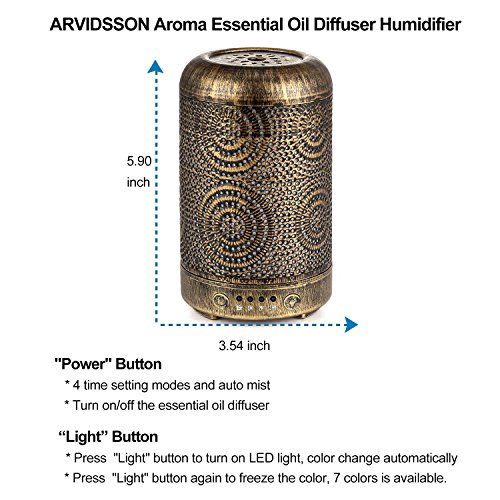 - 【Unique Metal Design】: ARVIDSSON ultrasonic aroma essential oil diffuser is an upgraded version, the diffuser cover is made from iron metal and BPA free. It gives a lovely fragrance in room, relax and enjoy your whole day. Best home decor and gifts.