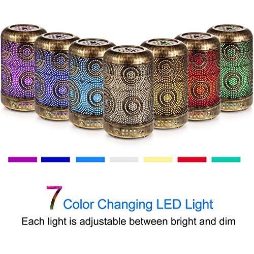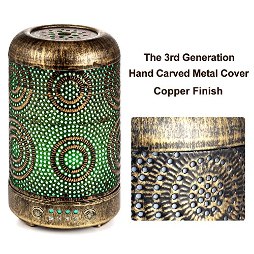 Arvidsson Aromatherapy Essential Oil Diffuser Humidifier, Vintage Metal Oil Diffusers for Essential Oils with 4 Time Setting and 7 Color Light, Waterless Auto Shut-off for Baby Home Office Yoga