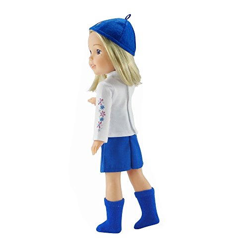 -. Feature : Made to fit 14 Inch dolls such as American Girl Wellie Wishers, Hearts For Hearts Girls, and similarly sized dolls. / Gift-Boxed! Packaged in classy pink gift box with Emily Rose logo. / Clothing Outfit includes a super detailed 14" doll Daisy Girl Scout inspired tunic in beautiful bright blue with 5 colorful embroidered patches and a removable insignia tag, not to mention 2 amazing pockets! / This awesome Scout uniform also includes a bright blue pleated skirt and socks, matching blue hat with embroidered flower, and amazing long sleeved tee with one of a kind Daisy flower print. / Designed and manufactured by Emily Rose Doll ClothesTM. Luxurious high quality fabrics, hand washable, safety tested.