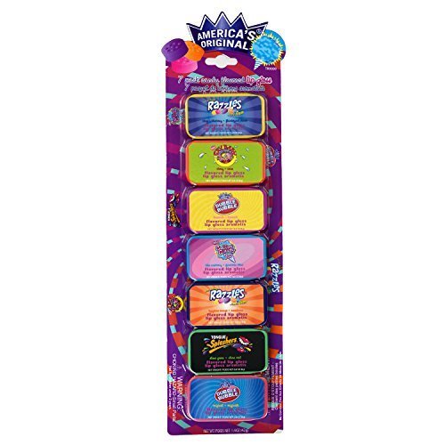 -. Feature : 7 flavored lip balm in tins / Candy brands include Razzles, Dubble Bubble, and more