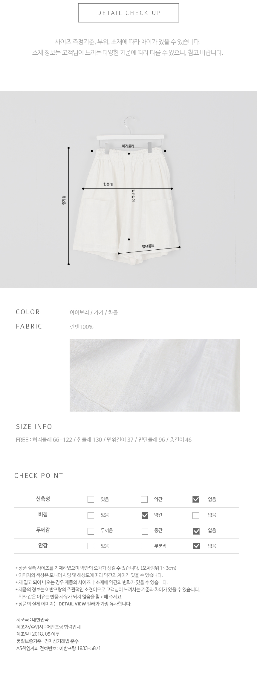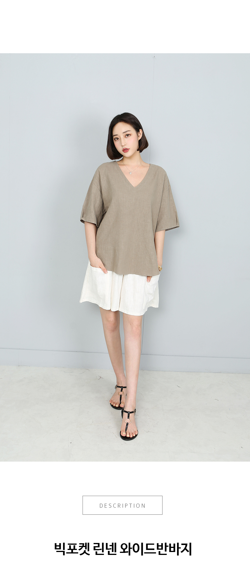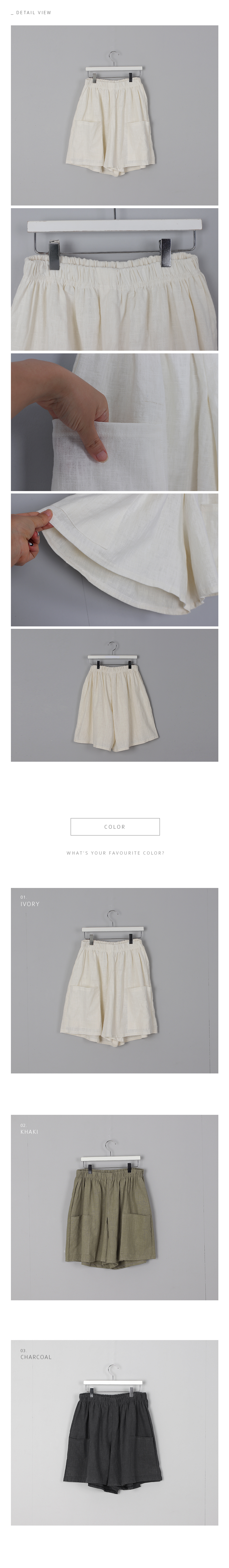 치마인듯 바지인듯 넓은 폭이짧지 않아 좋은 반바지로양쪽 빅포켓이 있어 더욱 멋스러워요린넨 100%에 조직감이 보이는네추럴한 소재감에 편안한 무드의디자인이 잘 어우러져 부담없이입기 좋은 4부길이감의 반바지랍니다같은 소재의 레오 브이넥 린넨 블라우스와세트로 입어도 좋아요색상은 아이보리, 카키, 차콜사이즈는 FREE 44~66반▼ 관련상품 : 피그 드레이프 코튼 티셔츠레오 브이넥 린넨 블라우스낭만 캡소매 스모크 블라우스
