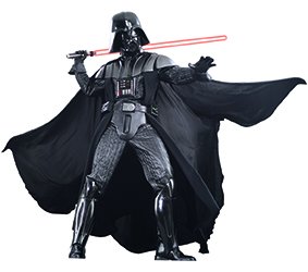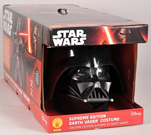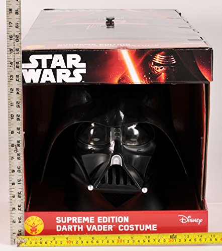 Officially licensed supreme edition Darth Vader costume is as close to one of movie's best villains ever. Costume is a jumpsuit with quilted pants and sleeves; heavy duty injection molded armor pieces cast from original Lucas studios molds. Available in standard and x-large sizes. Only from rubies costume company.