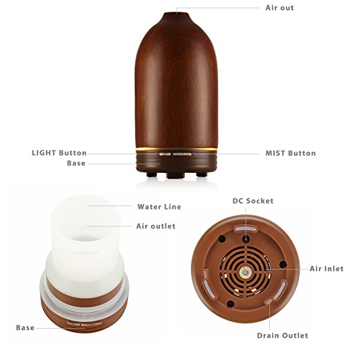 Flexzion Aromatherapy Essential Oil Diffuser Humidifier (Wood) - Electric Ultrasonic Aroma Scent Fragrance Burner Vaporizer Moist Mist Light, Portable for Personal Home Bedroom Office SPA 100ml