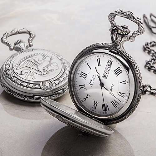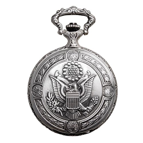 -. Title : Daniel Steiger Flying Eagle Luxury Vintage Hunter Pocket Watch - Hand-Made Hunter Pocket Watch - Engraved Flying Eagle Design - White Dial With Black Roman Numerals