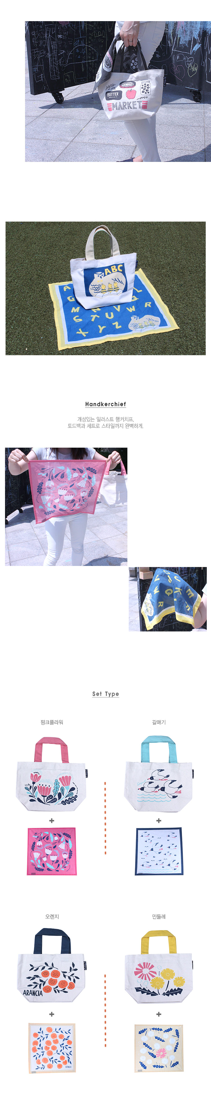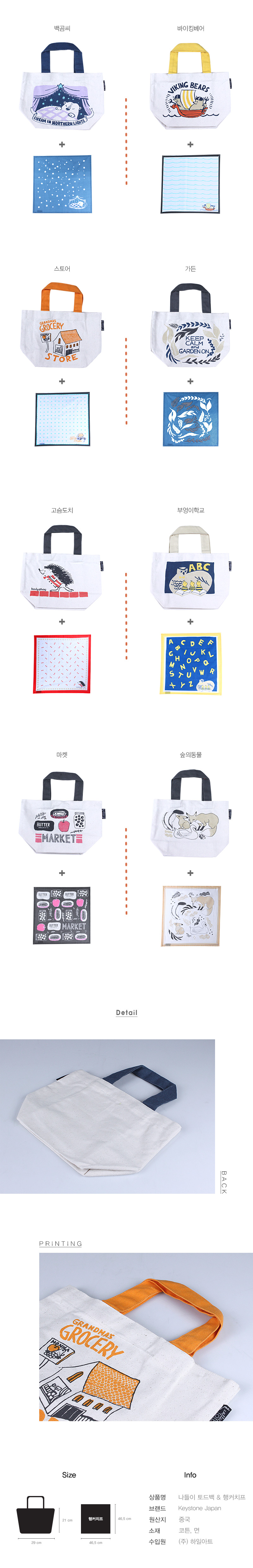 이야기를 담은 듯 한 일러스트 에코백과 행커치프 세트은 즐거운 나들이 시간을 선물합니다.