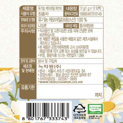 유기가공식품 인증번호 : 제94-8-12호