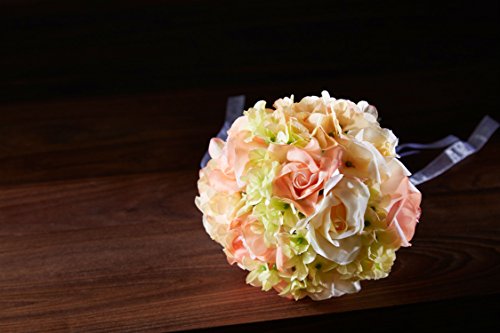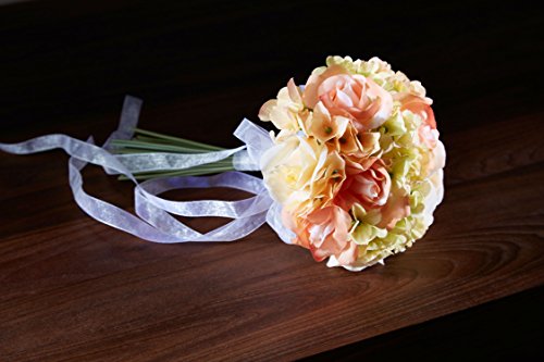 - Title : Hydrangea Rose Yellow and Peach Hand Tie Small - Silk Bridal Wedding Bouquet