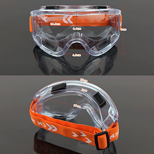 -. Feature : Made of High strength PC lens,prevent chemical splash; / Breathable original gap ensure air circulation,Indirect vent design, reduce dust and liquid splashes; / Adjustable headband,lightweight material,no pressure to wear,anti-scratch,anti-dust, anti-shock,can prevent 99% UV; / Soft silicone nose clip,wearing long time comfortable,thick polycarbonate lens and anti fog lens processing, super wear resistance; / Ideal for outdoor,indoor,interior renovation,agriculture,working,sports,riding,laboratory,industry work,safty working,Men and women available.
