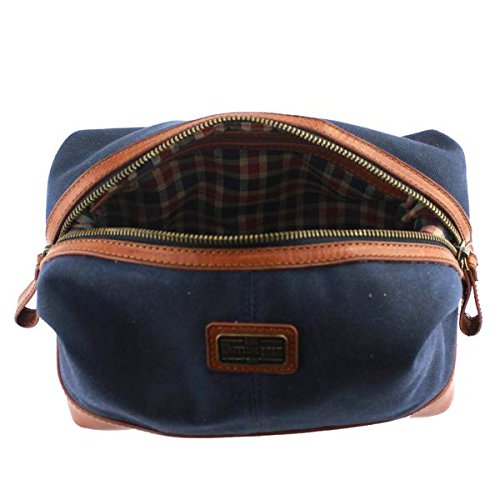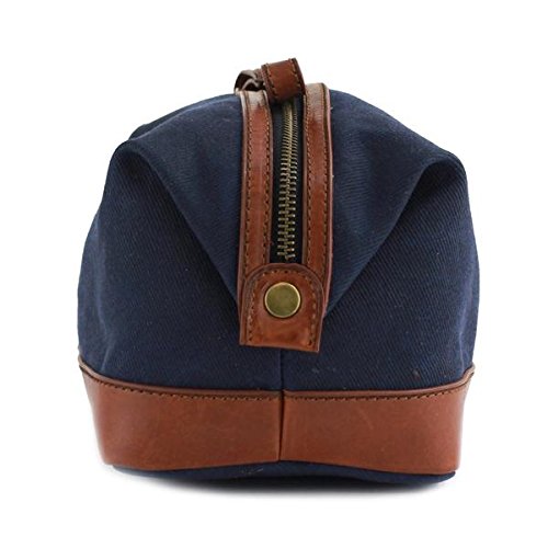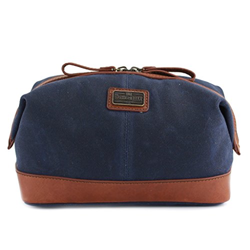Langdale 100% Premium Genuine Leather & Waxed Twill Wash Bag, Zipped Pocket
