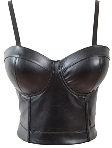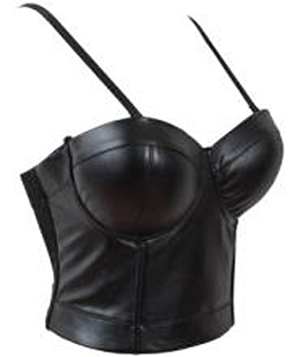 Charmian® Women's Sexy Faux Leather Bustier Racer Sports Bras D Cup Black 4X-Large