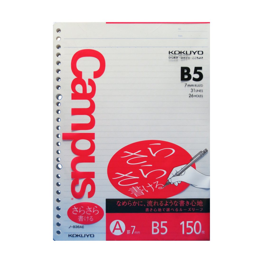 Original base paper that is most suitable for writing / "Sasara" "Firmly" Both base paper are less likely to bleed and Kokuyo original base paper, which is hard to see through the ink, is used.