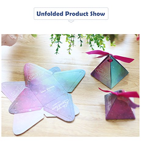 - Features: 100% brand new and high quality. Double sided printing with dream star sky design. Beautiful shape, small, delicate and save space. Unique candy box, increase the wedding creativity, passing sweet happiness.