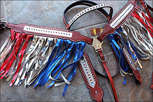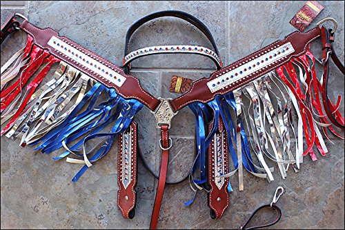 This is a unique combination of gorgeous headstall and Breast Collar constructed of High quality thick 100% leatherand#44; carefully hand-made with all the required precision to give the most unique look on an arena or a trail. The edges are all hand-dyed and the hardware used is solid Stainless Steel. They are ideal for a standard size horse and have some room for adjustments. 0 |