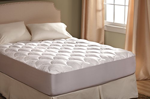 Feature : 2" of ultra-soft, silk-like polyester fibers / 350 Thread count, 100% cotton cover / Spandex skirt designed for up to a 16" mattress / Heavy duty elastic around entire perimeter of skirt for a stay-put fit / Hypoallergenic and machine washable and dryable