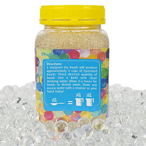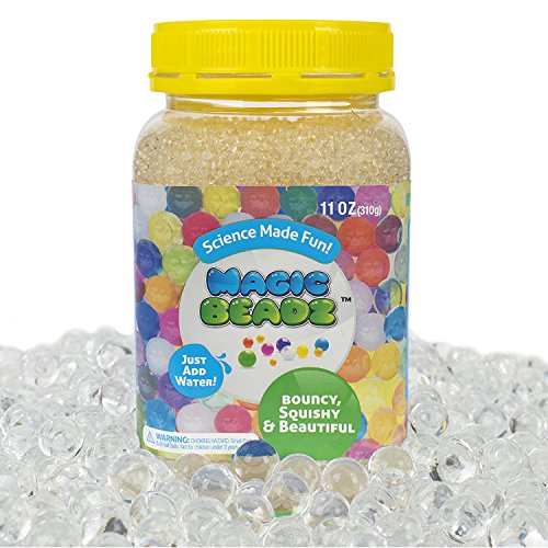 Magic Beadz - Clear Gel Water Beads - Transparent Jelly Pearls - Vase Filler - Wedding Centerpiece - Candles - Flower Arrangements - Over 30,000 Beads - 11oz Jar Makes Over Ten Gallons (11oz, Clear)