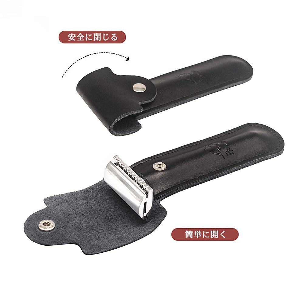 トラベル レザーケース 全てのかみそりにフィットします。キャラクターの丈夫な革。 専用の革ケース 両刃カミソリをぴったり収納できます。 サイズ:5,5 cm (トップ部分) x 13,5 cm ケースは の職人が ハンドメイドで 高品質で最高級のオイル入りレザ プレゼントとして:父、おじいちゃん、兄弟、夫、友達へのクリスマスプレゼント・誕生日プレゼントとしてもピッタリです!