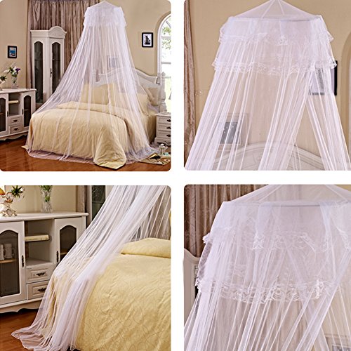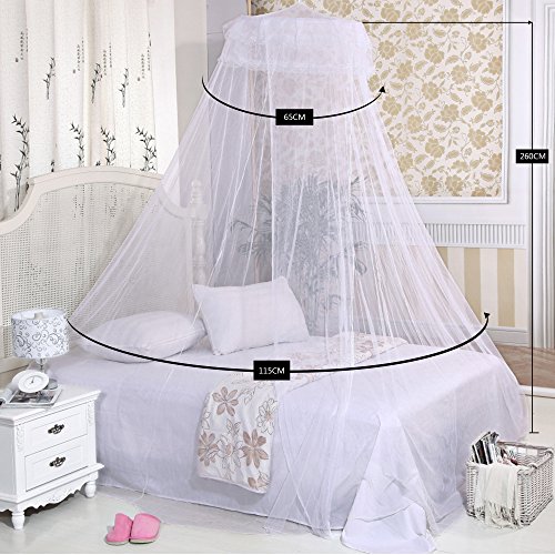 -. Feature : Strong Functionality: Mosquito net is ,super thin design, unique structure, dust-proof, pest control, anti external interference. Keeps out mosquitoes, flies and other flying insects, Lets you enjoy a peaceful sleep. This safety mosquito screen not only will keep the mosquitoes away, but also offer you romantic nights in your bedroom or under the stars! / Easy to Use: The sturdy dome pops up and holds the net in place in 1 second. No assemble skill needed. / Hassle Free Installation: With a strong adhesive plate and two screws, easy to install to the ceiling. With a strong suction hook and two screws, easier to install. Sucker diameter 4.72in, Screw fixation more firmly. / Lace Dome Design: Our P.R.Incess mosquito net with lace dome design makes your bedroom more romantic and fancy. You will always feel like in the fairy tale world. Every thing is so beautiful. / Portable to carry: The weight of mosquito net is 0.88 pound. Since it is very thin, you can use it indoors or even outdoors while camping!