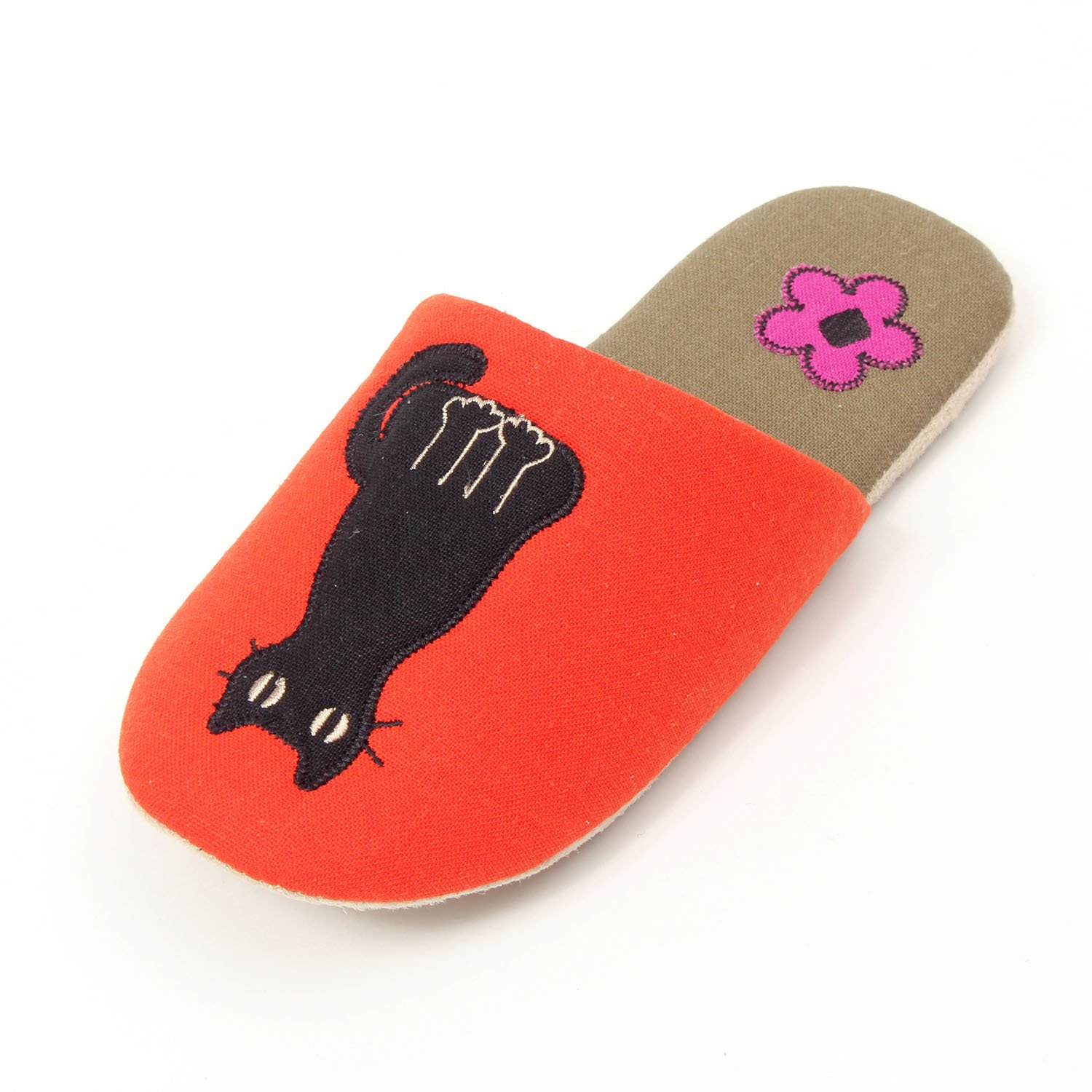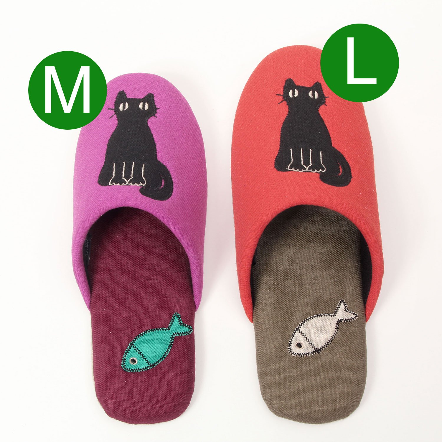 In addition to black cats, there are appliqués of flowers and fish in the sole part, slippers full of playfulness.
