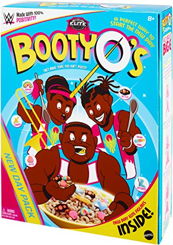 -. Binding : Toy -. Brand : WWE -. EAN : 0887961479454 -. Feature : Capture the blowout action of WWE Superstars with The New Day Tag Team Elite Figures multipack! / Featuring WWE's biggest personalities and Champions, these bold and colorful figures include Big E, Kofi Kingston and Xavier Woods as they appeared in WrestleMania 32 in Dallas, Texas / Special "Booty O's" cereal box packaging features a front panel that opens up to reveal the uniquely deco'd New Day Tag Team figures / Each figure has deluxe articulation, a detailed character expression and set comes with Xavier's signature trombone accessory / Let the battle begin! -. IsAdultProduct : 0 -. Label : Mattel -. Manufacturer : Mattel -. Model : FDX69 -. MPN : FDX69 -. NumberOfItems : 1 -. PackageQuantity : 1 -. PartNumber : FDX69 -. ProductGroup : Toy -. ProductTypeName : TOYS_AND_GAMES -. Publisher : Mattel -. Studio : Mattel -. Title : WWE Booty-O's New Day Tag Team Elite Figures -. UPC : 887961479454 -. Warranty : 1 year warranty against manufacturer defects