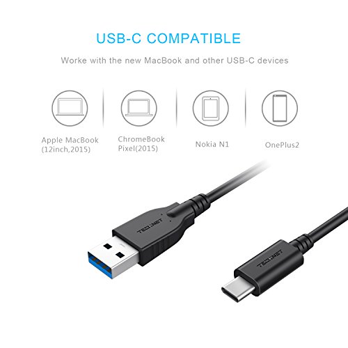 TeckNet USB 3.0 Type C (USB-C) to Type A (USB-A) 1M (3.3 feet) Fast Charging & Data Transfer Cable For Apple New Macbook 12 Inch, Nokia N1, Chromebook and Other Type-C Supported Devices
