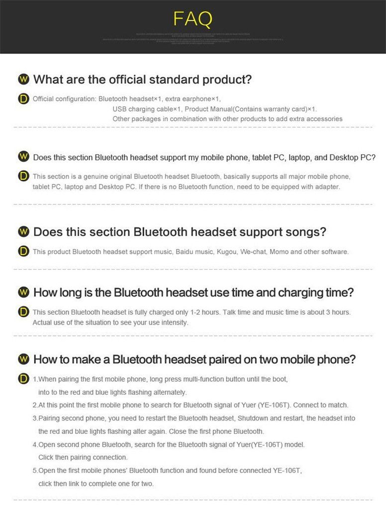 Wireless YE-106T Mini Stereo Bluetooth V 4.1 Headset Music Earphones 5 Colors