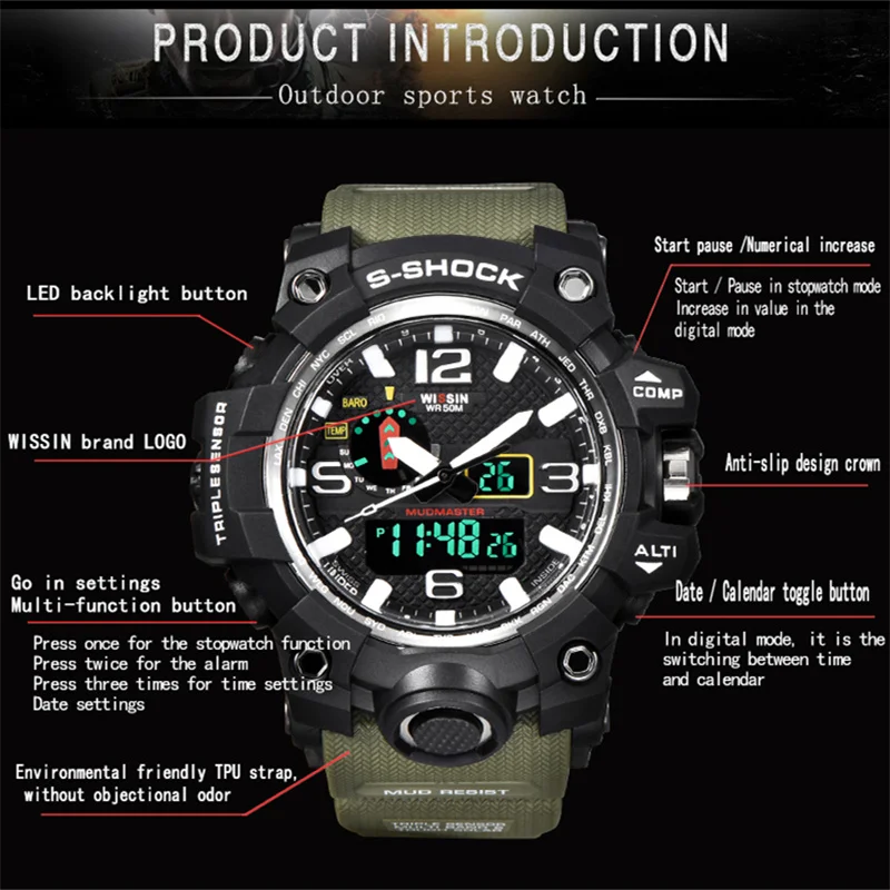 Feature:Waterproof. Chronograph.Multiple Time Zone.LED display