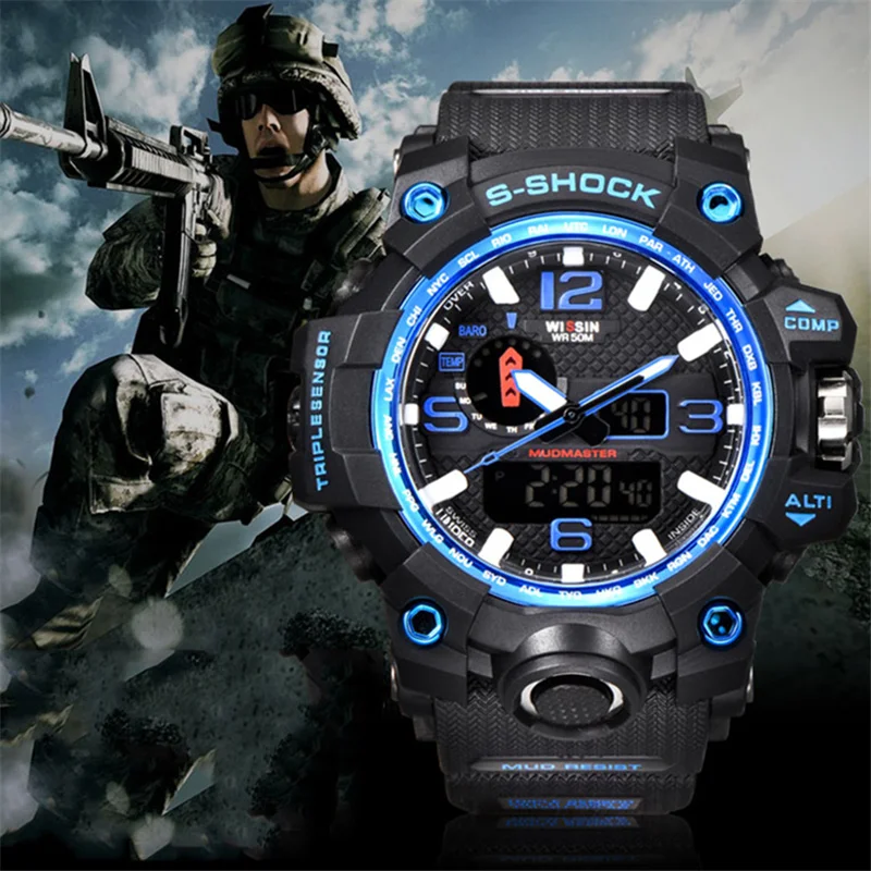 Watch Men:LED Dual Time Watches Top Brand Luxury