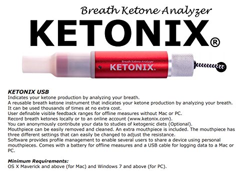 -. Feature : Requires power source - no battery included.Indicates your ketone production by analyzing your breath, A reusable instrument that can be used more than a 1000 times., Painless and no need to purchase strips every month. / NOTE: Acetone levels are different than Blood BHB Levels. A perfect choice for anyone who is adopting a Paleo, Ketogenic or Low Carb diet / Also note: This device may require 5-10 minutes to warm up and connect to the software. / For best resutls - a computer is required but but it does comes configured with the general settings indicating acetone in ppm (the light feedback can be changed by user software) What is included: Ketonix USB Cable, an extra mouthpiece, a manual and a perfect KETONIX zipper pack (15 cm X 10 cm X 5 cm) NO BATTERY INCLUDED - can plug into any USB Plug in Adapter / http://www.ketonix.com/images/PDF/Ketonix-Manual-Current.pdf