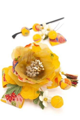 -. Title : 髪飾り 3点セット 花 和柄
