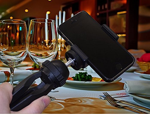 Cell phone mount adapter holder: compatible with iPhone ( 7, 7s, 7 plus, 6s, 6 plus, 5s, 5, 5c) Samsung Galaxy edge ( S8 S7, S6, s5) Galaxy Note ( 5, 4, 3) BlackBerry, LG, HTC, Sony, Nokia, Panasonic, Asus, Acer, HP, Huawei, acuvar, Lenovo and Motorola. Kit includes: microfiber cleaning cloth and a FREE 4-inch mini flexible tripod