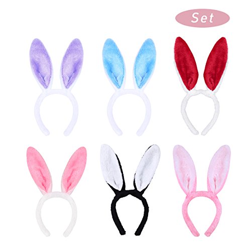 (FEESHOW)/Accessories/Hair Accessories/DIRECT FROM USA/FEESHOW Children Girls Plush Bunny Rabbit Ear Hairband Easter Headband Pack of 6 Party Decorati...
