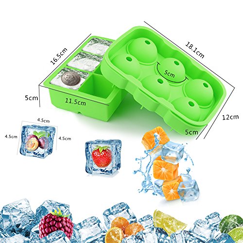- 【Food Grade Silicone & Giant Ice Cube Trays】Yegu Ice cube trays are durable and safe that made by non-toxic food grade silicone, leaving it odor free and without any aftertaste. BPA free and FDA approved. Create 6 large 2-inch square ice cubes and 6 sphere 1.75-inch ice balls at once. Improve the taste and quality of all your favorite beverages with slow-melting ice balls and squares.