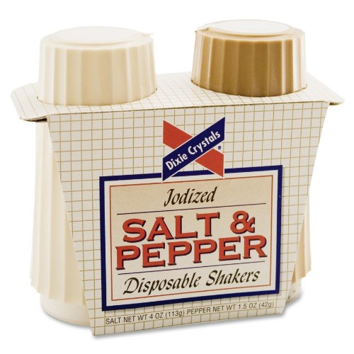 [Product Information]- Sold as 1 PK. Salt and Pepper Disposable Shakers are great for all types of kitchens and cafeterias. Salt shaker holds 4 oz. of salt (included). Pepper shaker holds 1.5 oz. of pepper (included).
