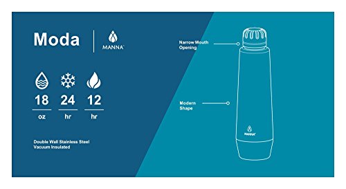 HOT AND COLD DRINK ALL DAY – Manna uses vacuum insulation technology, which keeps hot drinks hot and cold beverages cold. The Moda drink container features double wall construction that creates an airless space. Your coffee stays piping hot and cold water icy cool.