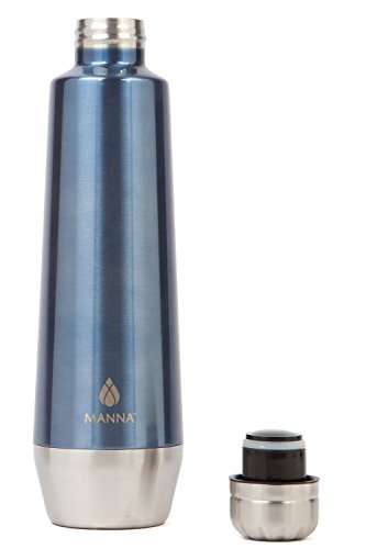 Manna Moda Metallic Stainless Steel Double Walled Vacuum Insulated 18 oz Water Bottle | No Sweat | BPA Free | Keeps Drinks Hot 12 Hours & Cold 24 Hours | For Office, Home or Camping - Shark
