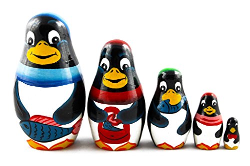 -. Title : Matryoshka Matrioska Babuska Russian Nesting Wooden Doll Family Penguin Pinguin Babushka 5 Pcs Stacking Hand Painting Beautiful Nested Matriosjka Matreoska Matreshka Matrjoska Matroeska