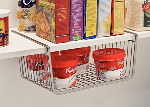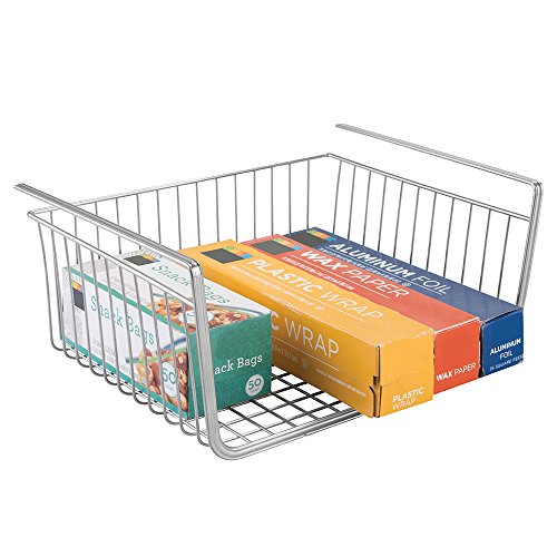 mDesign Under Shelf Hanging Wire Storage Basket for Kitchen Pantry - Silver