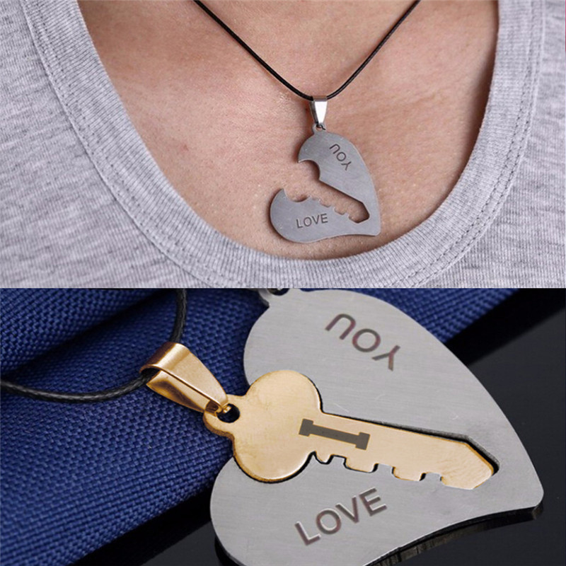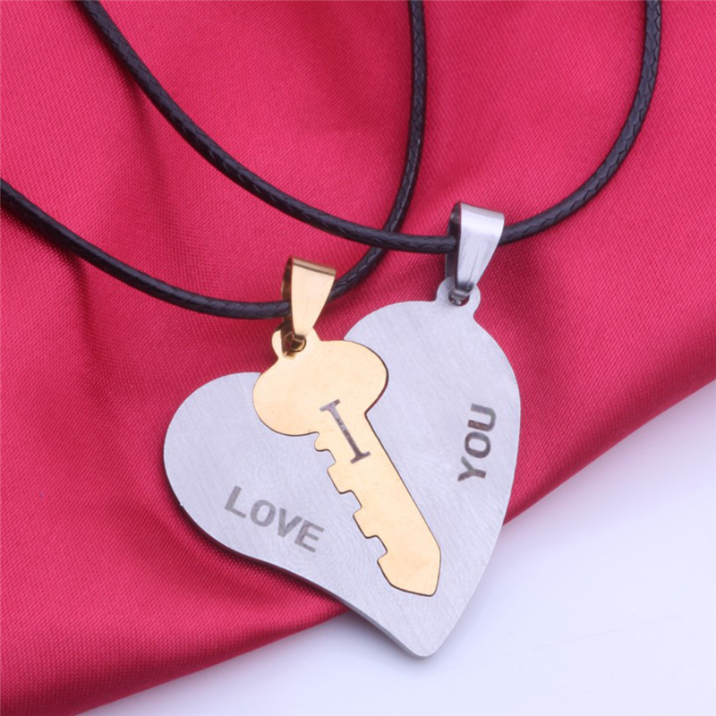 I Love You Couple Lover Matching Key Heart Stainless Steel Pendant Necklaces