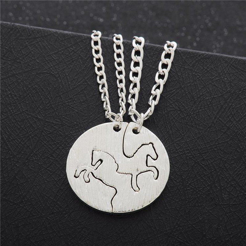 2x Two Horses Lover Best Friend Gifts Charm Silver Plated Pendant Necklace Set