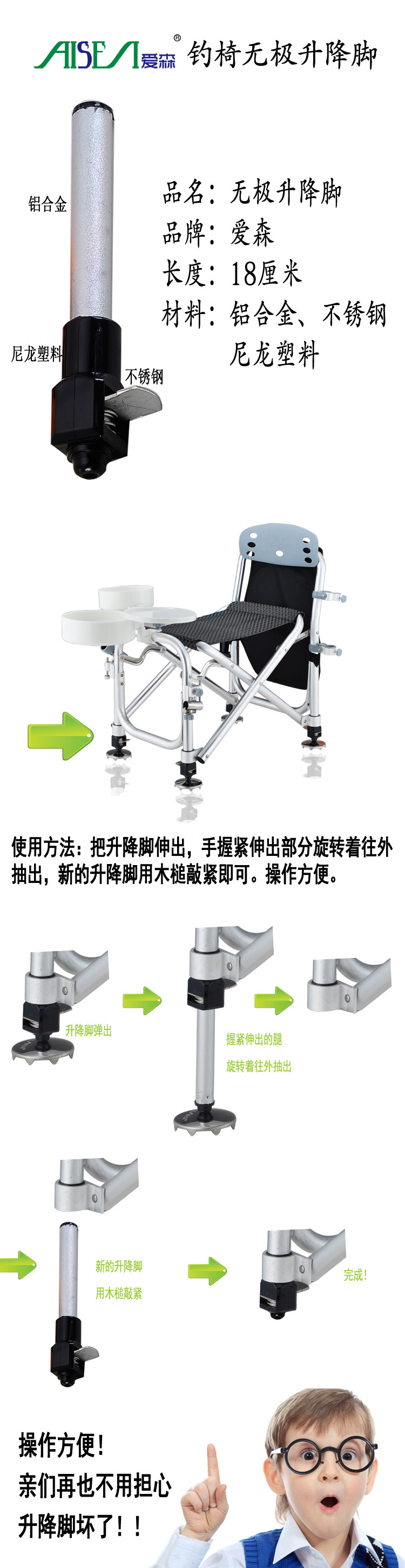 Material: Aluminum with stainless steel, nylon, plastic