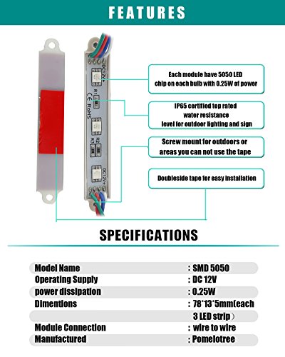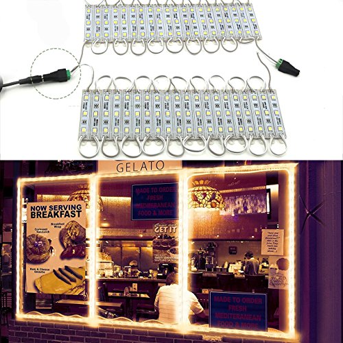 - DETAIL: 20 Ft Storefront 40 Pieces Warm White 5050 LED Light module . Total of 120pcs big 5050 SMD Color Changing led chips with project lens. With superb adhensive tape on each module, just peel and stick any where you want .