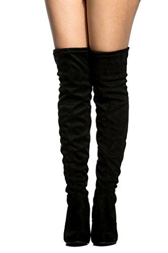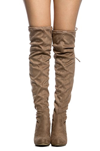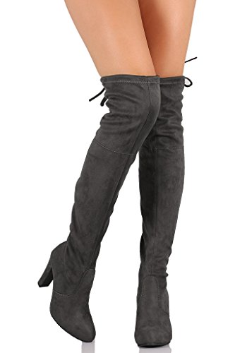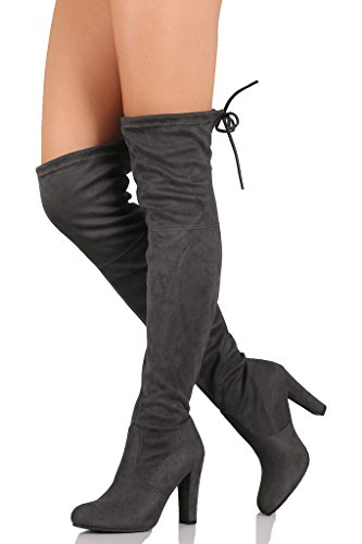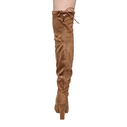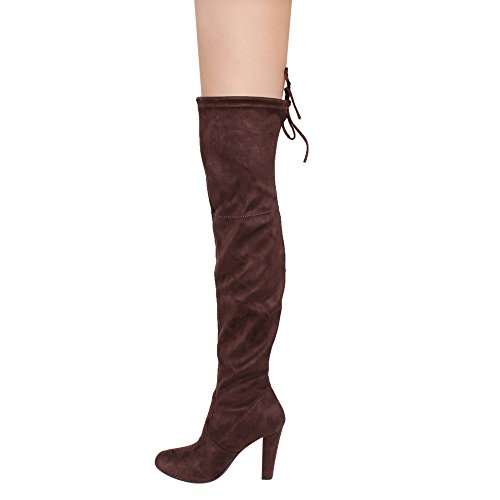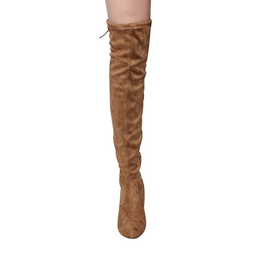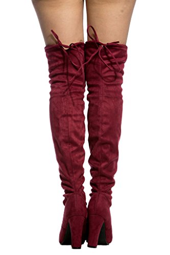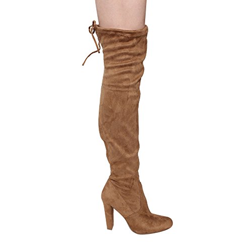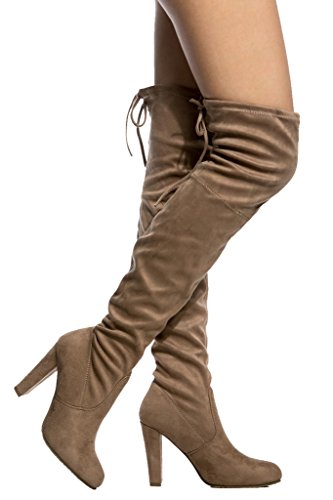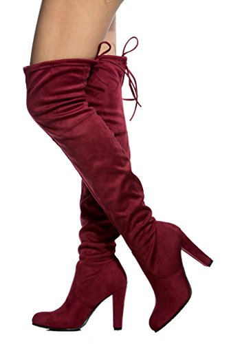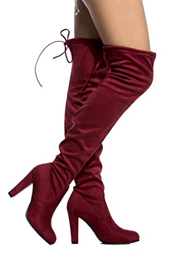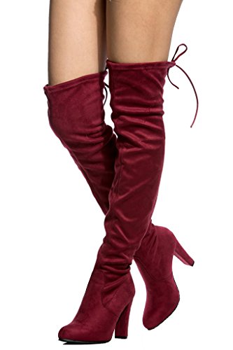 Women's Diva Thigh High Over The Knee - Drawstring Block Chunky Heel Pointy Round Toe - Stretch...
