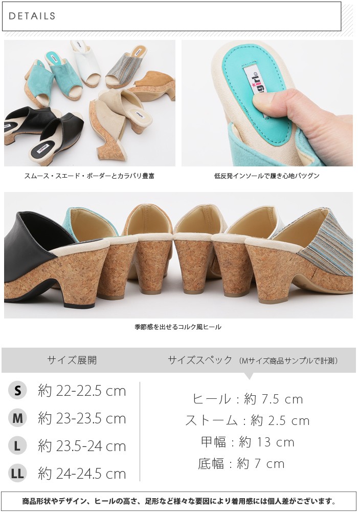 | サイズ | Sサイズ(22.0~22.5cm) Mサイズ(23.0~23.5cm) Lサイズ(23.5~24.0cm) LLサイズ(24.0~24.5cm) |