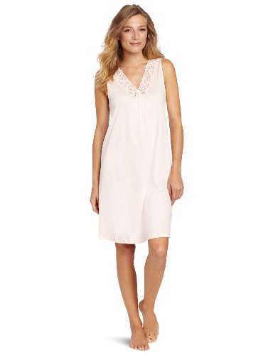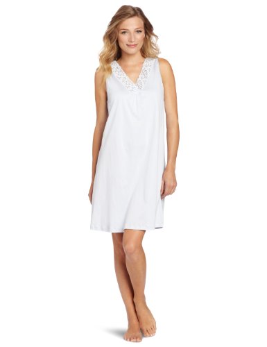 Schones Nachtkleid in Weiss ohne Armel mit einem schonen Spitzen Ausschnitt, gemacht von Hanro of Switzerland