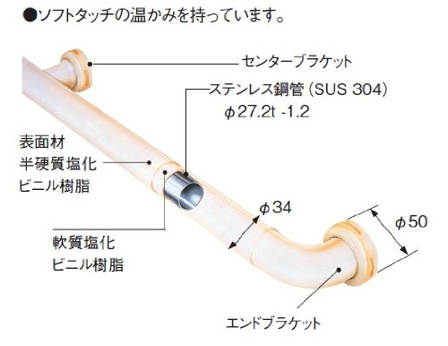 Personal use assistant railing suitable for housing, hospital private room, etc. <BR> Ideal for cases where a little handrail is required at the entrance, toilet, bathroom etc <BR> Mounting screw (wood screw / stainless steel 8 × 50)