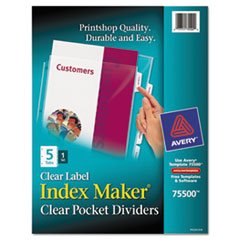 ** Index Maker Clear Label Three-Hole Punch View Dividers, Letter, 5/Set **